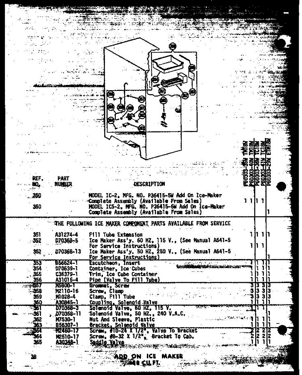 Parts for Amana ET16N-A-P60303-54WA: Add On Ice Maker 18 Cu. Ft. (Tm18w / P60303-35W) (Tm18w-C / P60303-35Wc) (Tm18w-A / P60303-35Wa) (Tm18w-Ag / P60303-35Wg) (Tm18w / P60303-40W) (Tm18w-A / P60303-40Wa) (Tm18w-C / P60303-40Wc) (Tm18w-Ag / P60303-40Wg) (Tc18w-C / P60303-36Wc) (Tc18w-A / P60303-36Wa) (Tc18w / P603 Parts
