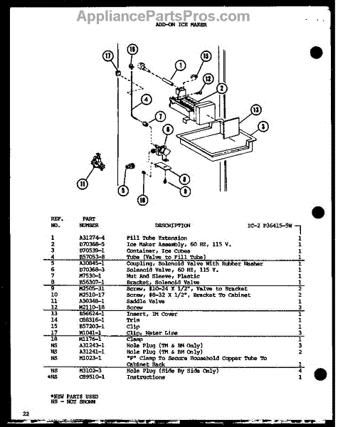 Parts for Amana SLI22F1-L-P7700009WL: Add On Ice Maker (Sli22f1 / P7700007w) (Sli22f1-L / P7700007wl) (Sli22f1 / P7700009w) (Sli22f1-L / P7700009wl) (Ic-2 / P36415-5W) Parts