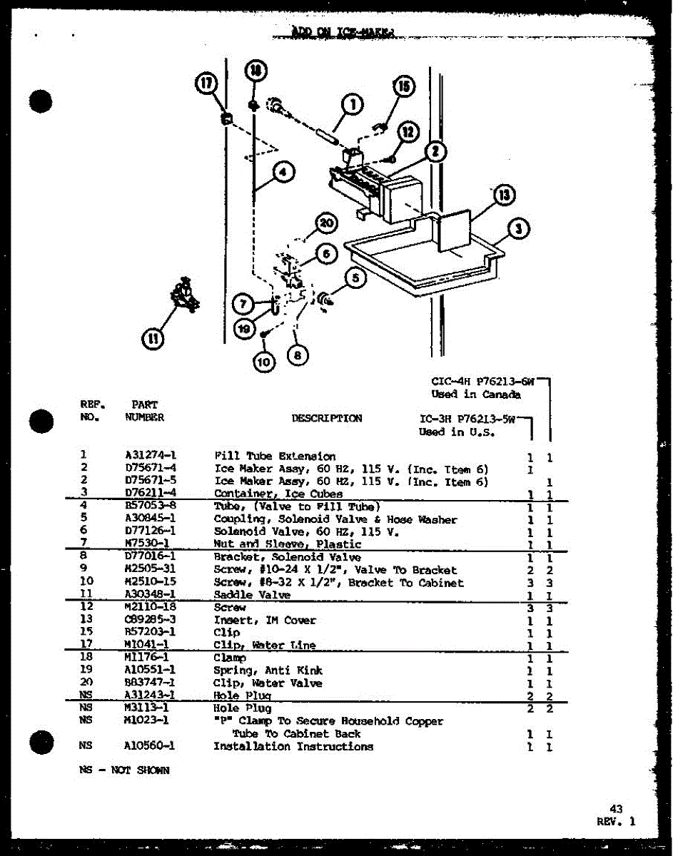 Parts for Amana TL18J-P7739024W: Add On Ice-Maker (Ic-3H / P76213-5W) (Cic-4H / P76213-6W) Parts