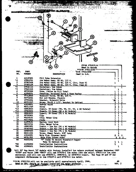 Parts for Amana TLI18K-P7803223W: Add On Ice-Maker (Ic3k / P7621309w) (Ic3k / P7621310w) (Cic4k / P7621311w) Parts