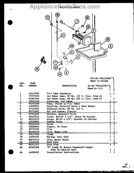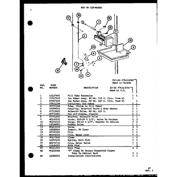 Parts for Amana TM16H-P7711002W: Add On Ice-Maker (Ic-3H / P7621305w) Parts