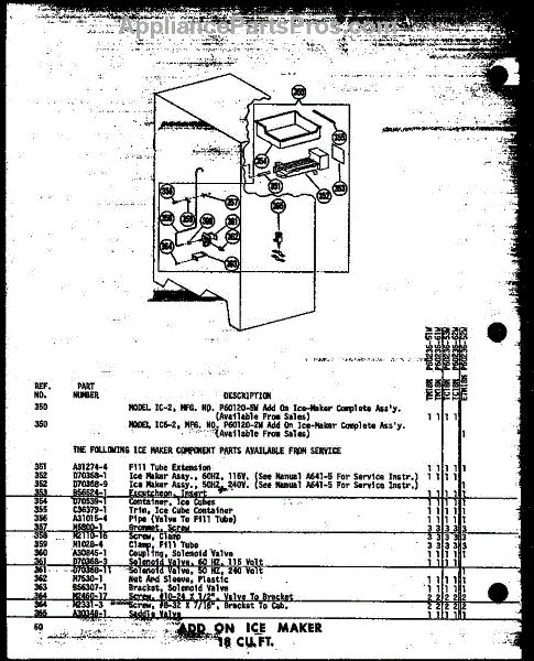 Parts for Amana TM18N-AG-P60236-61WG: Add On Ice Maker 18 Cu. Ft. (Tm18n / P60236-51W) (Tm18n-C / P60236-51Wc) (Tm18n-Ag / P60236-51Wg) (Tm18n-A / P60236-51Wa) (Tm18n / P60236-61W) (Tm18n-Ag / P60236-61Wg) (Tm18n-C / P60236-61Wc) (Tm18n-A / P60236-61Wa) (Tc18n-A / P60236-53Wa) (Tc18n-C / P60236-53Wc) (Tc18n-Ag / P Parts