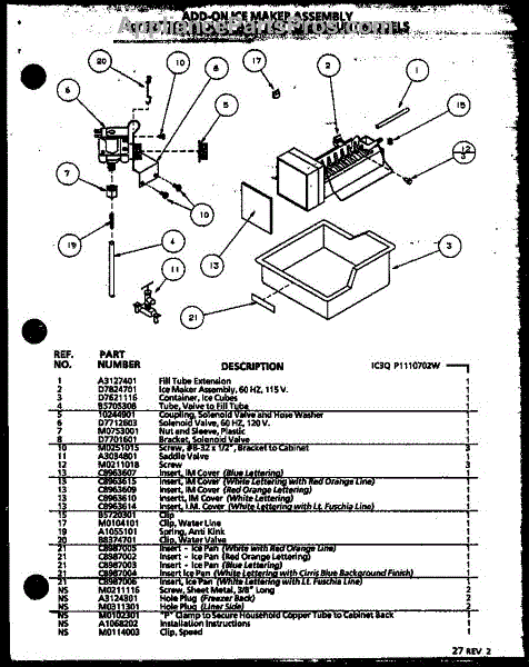 Parts for Amana TR18QBW-P111304WW: Add-On Icemaker Parts