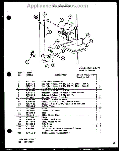 Parts for Amana TRG18SPH-P7711028W: Add On Ice-Maker (Ic-3H / P76213-5W) (Cic-4H / P76213-6W) Parts