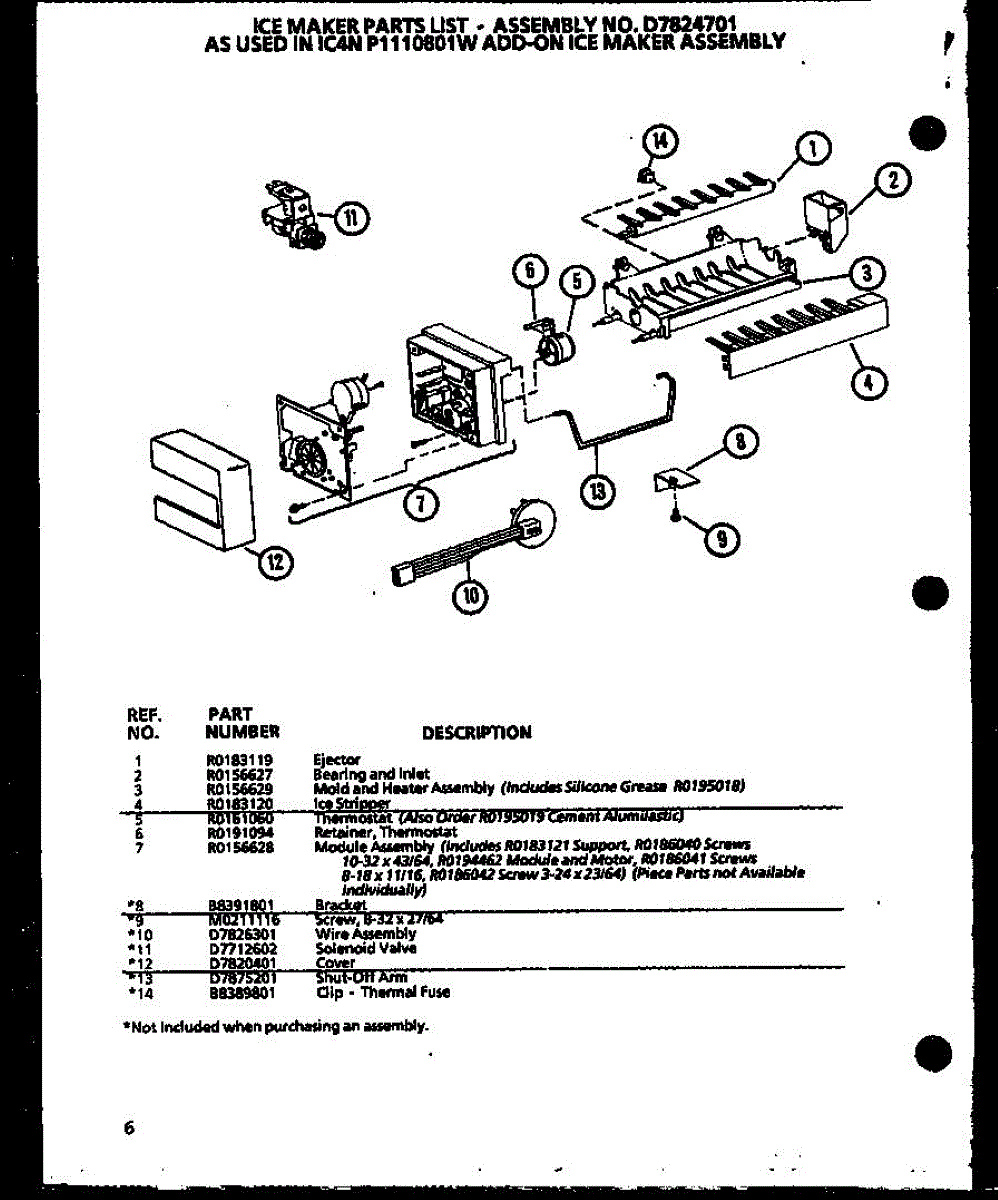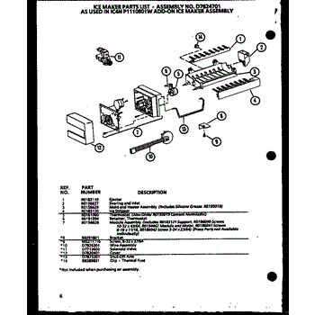 Parts for Amana IC3N-P1110701W: Add-On Ice Maker Assembly (Ic4n / P1110801w) Parts