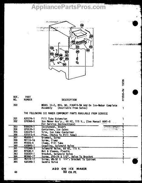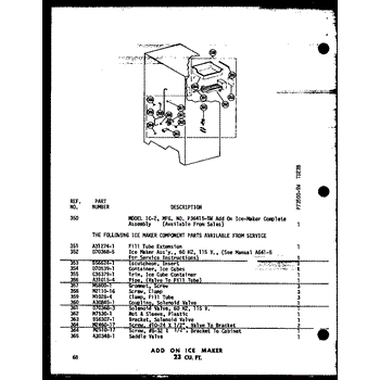 Parts for Amana TDH18B-A-P73500-12WA: Add On Ice Maker 23 Cu. Ft. (Td23b-C / P73500-9Wc) (Td23b / P73500-9W) (Td23b-A / P73500-9Wa) (Td23b-L / P73500-9Wl) (Td23b-G / P73500-9Wg) Parts