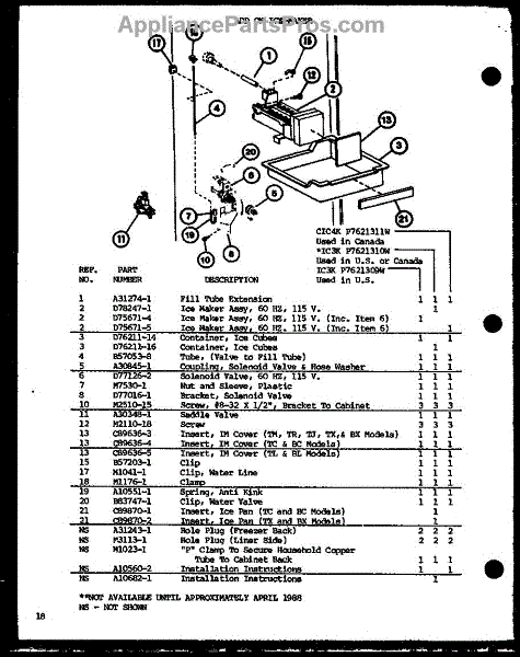 Parts for Amana BX20K-P7812512W: Add On Ice-Maker (Ic3k / P7621309w) (Ic3k / P7621310w) (Cic4k / P7621311w) Parts