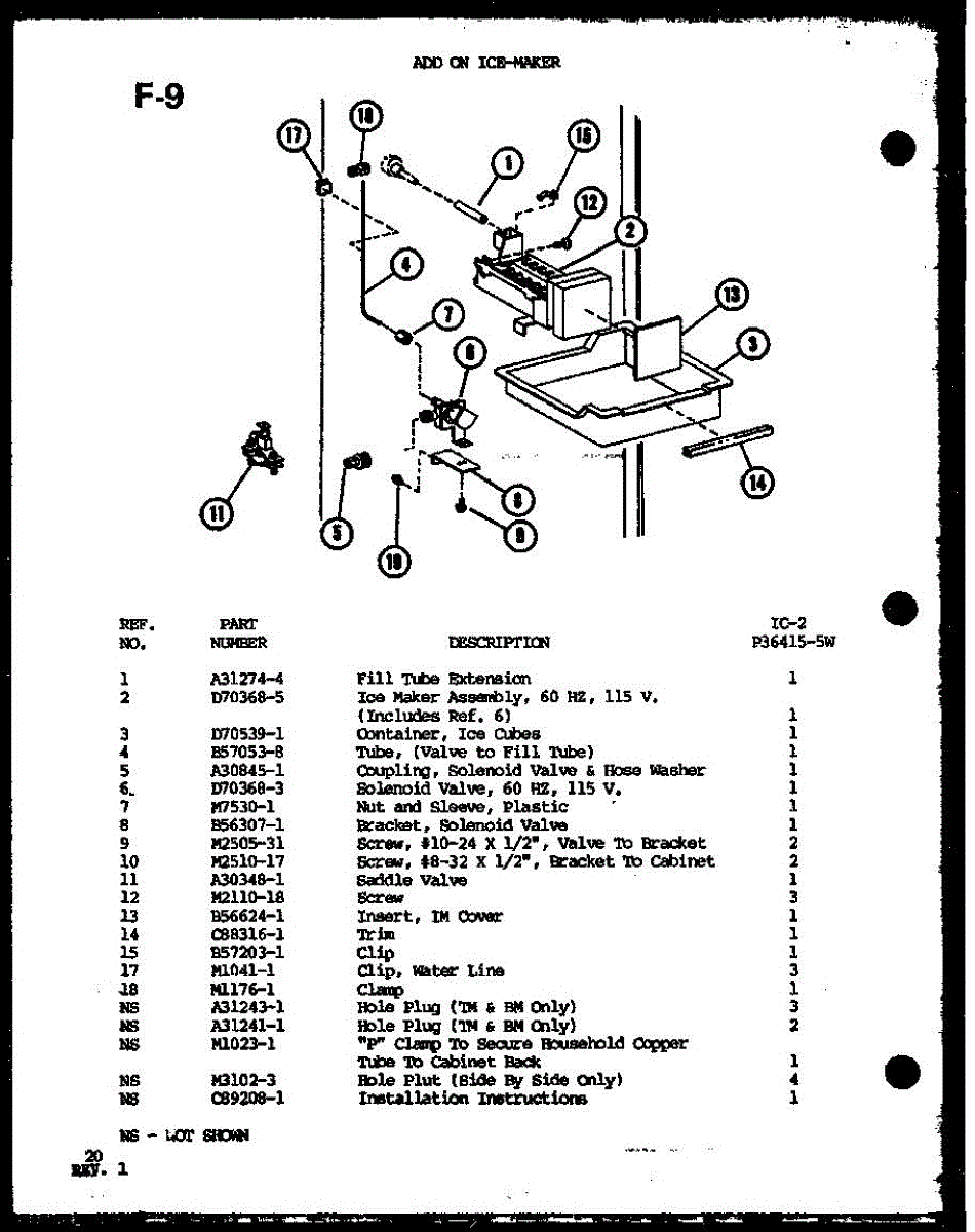 Parts for Amana SLI22F-G-P75400-18WG: Add On Ice-Maker (Ic-2 / P36415-5W) Parts