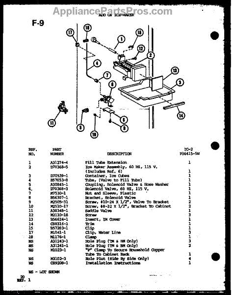 Parts for Amana SLI22F-P75400-18W: Add On Ice-Maker (Ic-2 / P36415-5W) Parts