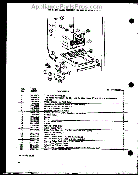Parts for Amana SX25J-P7870105W: Add On Ice Maker Assembly (Ic4 / P7808101w) Parts