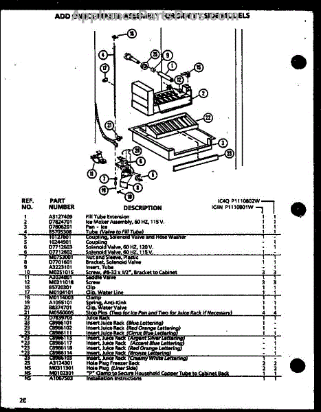 Parts for Amana SZ22MBL-P1120610WL: Add On Ice Maker (Ic4n / P1110801w) Parts