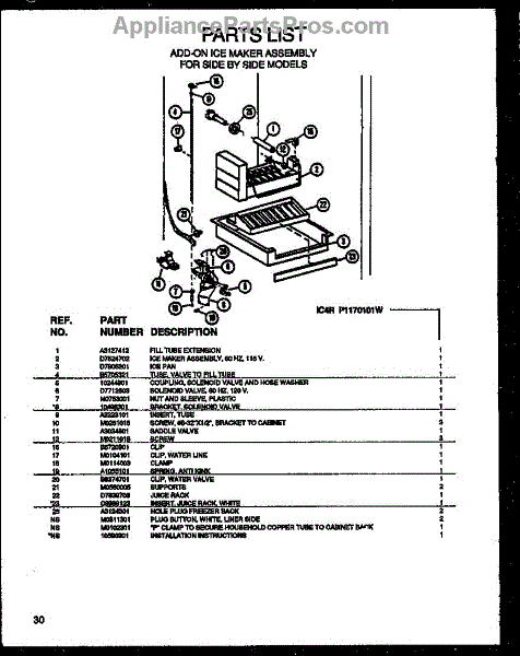 Parts for Amana SZ25NW-P1162702WW: Add-On Ice Maker Assembly Parts