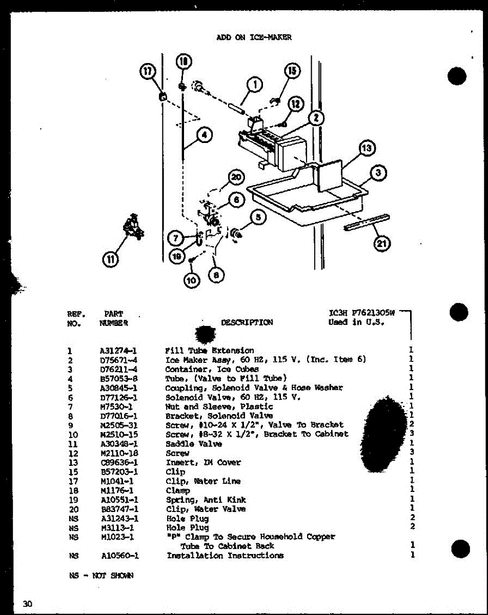 Parts for Amana TCI18J-P7739036W: Add On Ice-Maker (Ic3h / P7621305w) Parts