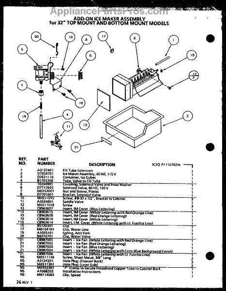 Parts for Amana TL20QL-P1111706WL: Add-On Ice Maker Assembly Parts