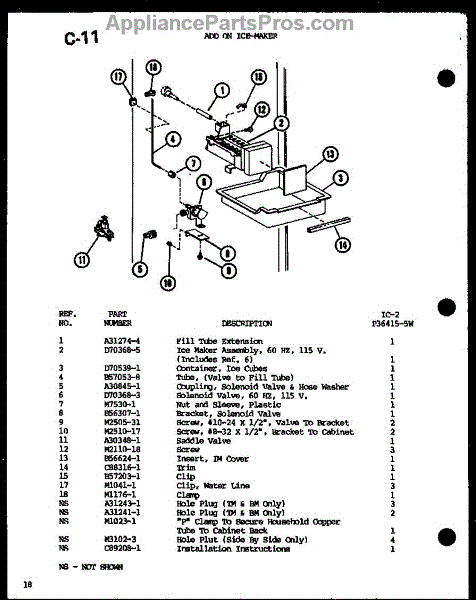 Parts for Amana TLI20F-G-P76164-3WG: Add On Ice-Maker (Ic-2 / P36415-5W) Parts