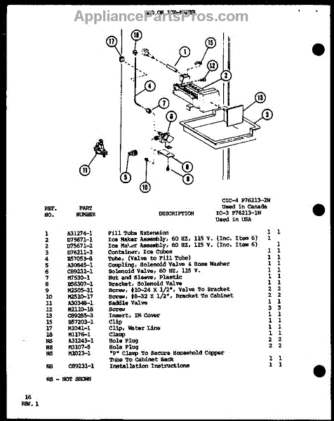 Parts for Amana TLI20G-P75535-19W: Add On Ice-Maker (Ic-3 / P76213-1W) (Cic-4 / P76213-2W) Parts