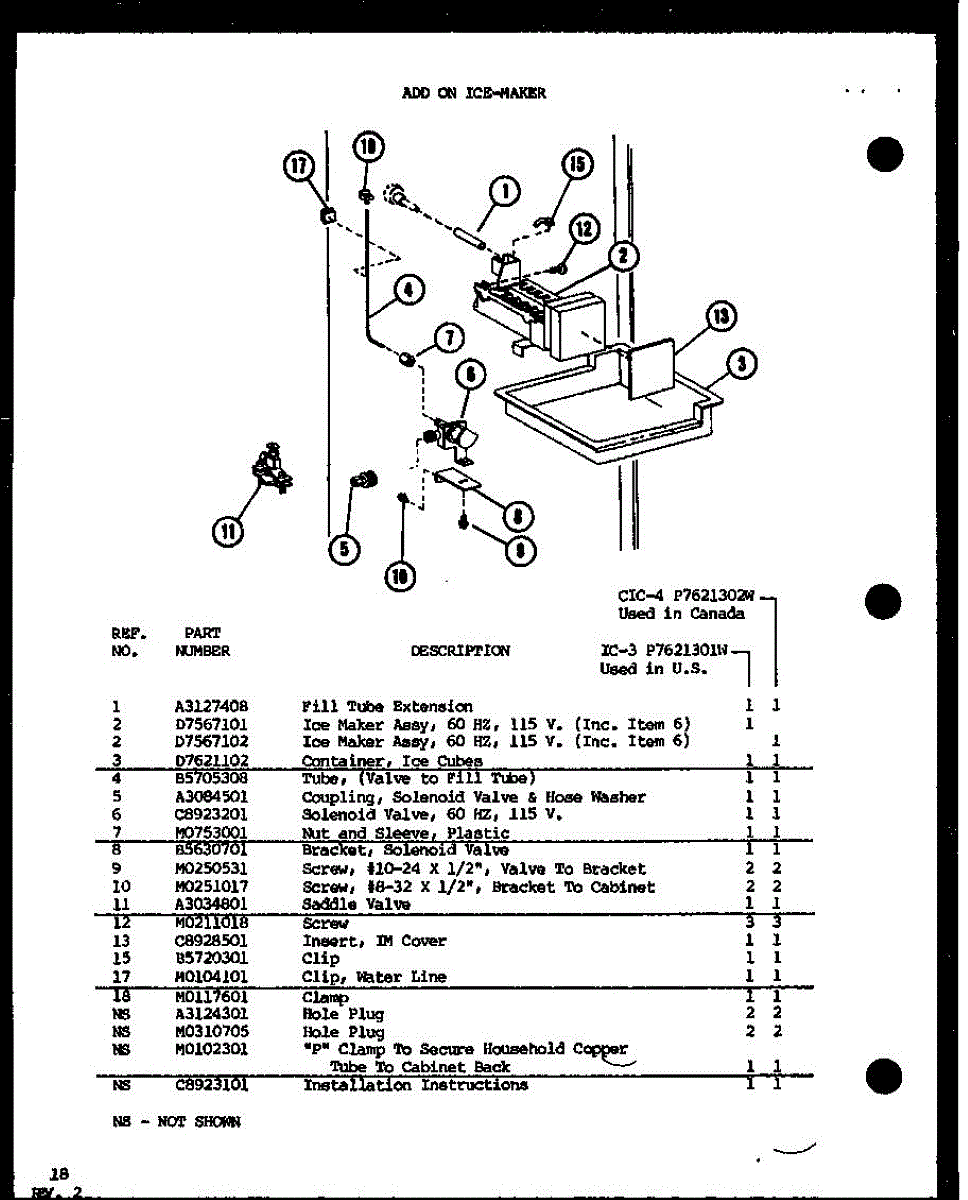 Parts for Amana TM16SPG-P7651212W: Add On Ice-Maker (Ic-3 / P7621301w) (Cic-4 / P7621302w) Parts