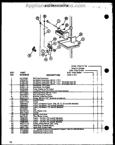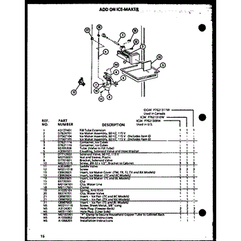 Parts for Amana TRG20M-P7859231W: Add On Ice-Maker (Ic3k / P7621309w) (Ic3k / P7621310w) (Cic4k / P7621311w) Parts