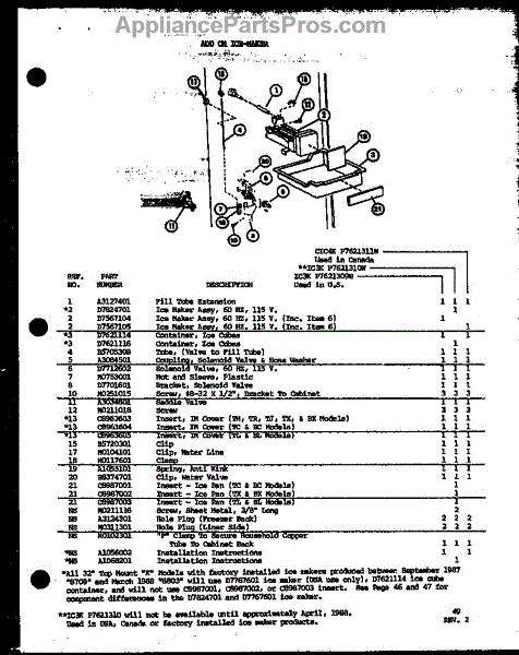 Parts for Amana TX18K-P7803201W: Add On Ice-Maker (Ic3k / P7621309w) (Ic3k / P7621310w) (Cic4k / P7621311w) Parts