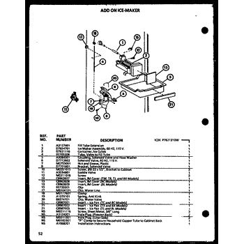 Parts for Amana TX18NB-P1106229W: Add On Ice-Maker (Ic3k / P7621310w) Parts