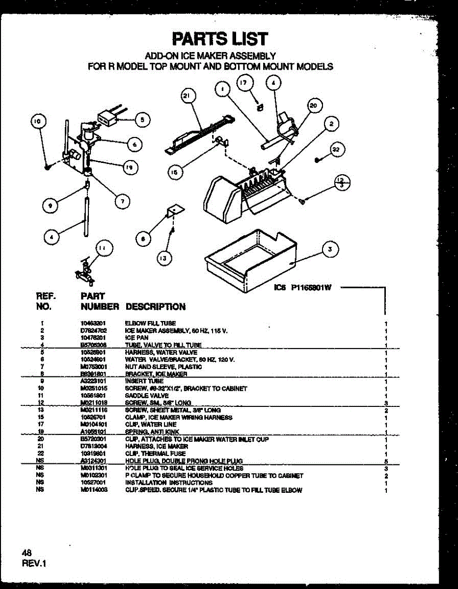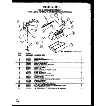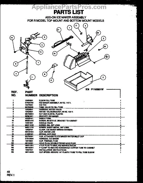 Parts for Amana TZI22RW-P1168003WW: Add-On Ice Maker Assembly For R Model Top Mount And Bottom M Parts