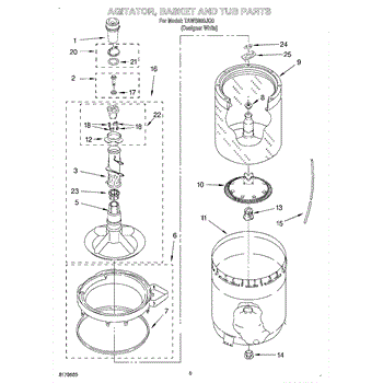 Inner tub basket holds clothing during wash cycles. Replace if cracked, rusty, or broken. Installs in center of washer between outer tub and agitator.