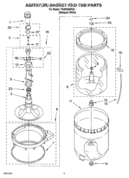 The Complete Agitator Assembly is an OEM part for Whirlpool washing machines. This assembly includes the central vertical agitator component along with the retainer ring. Together they are responsible for the agitation and rubbing motions that work to remove soils and stains from clothing during wash cycles. Causes of a bad agitator assembly can include wear and tear leading to wobbly or loose motions, cracks in plastic components from repeated impacts, or corrosion of metal components. Symptoms of a bad complete agitator assembly include: