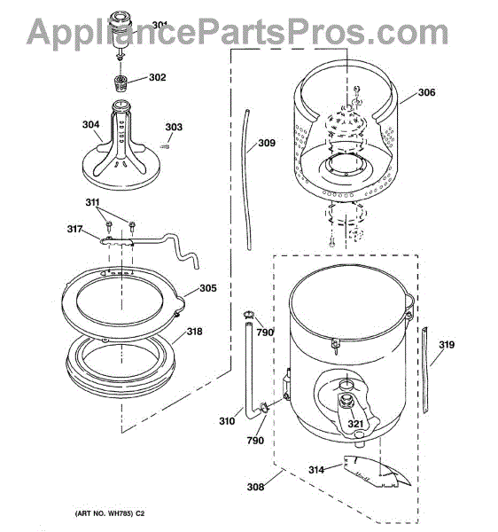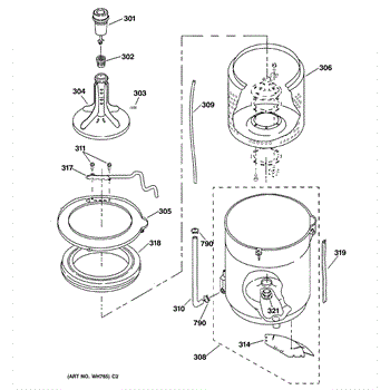 This tub assembly is the washer's outer tub that holds water and supports the inner wash basket, restoring a watertight wash chamber and proper drum alignment for normal operation. What it does
