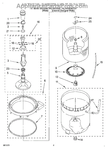 The Complete Agitator Assembly is an OEM part for Whirlpool washing machines. This assembly includes the central vertical agitator component along with the retainer ring. Together they are responsible for the agitation and rubbing motions that work to remove soils and stains from clothing during wash cycles. Causes of a bad agitator assembly can include wear and tear leading to wobbly or loose motions, cracks in plastic components from repeated impacts, or corrosion of metal components. Symptoms of a bad complete agitator assembly include: