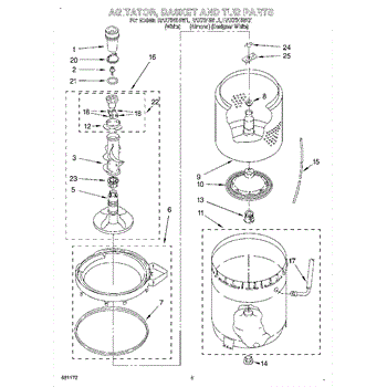 The Complete Agitator Assembly is an OEM part for Whirlpool washing machines. This assembly includes the central vertical agitator component along with the retainer ring. Together they are responsible for the agitation and rubbing motions that work to remove soils and stains from clothing during wash cycles. Causes of a bad agitator assembly can include wear and tear leading to wobbly or loose motions, cracks in plastic components from repeated impacts, or corrosion of metal components. Symptoms of a bad complete agitator assembly include:
