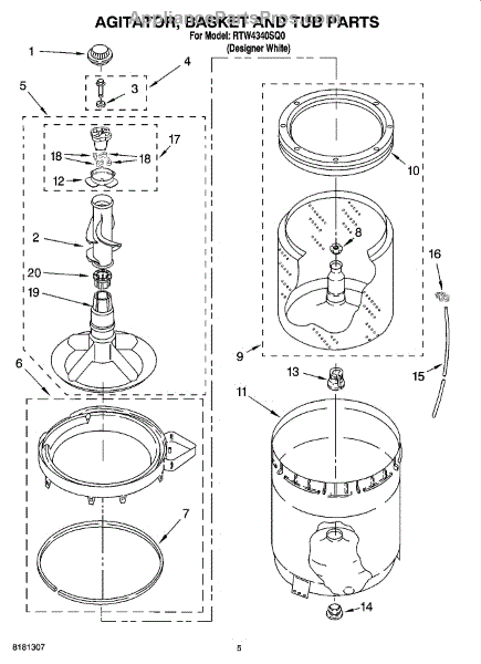 The Complete Agitator Assembly is an OEM part for Whirlpool washing machines. This assembly includes the central vertical agitator component along with the retainer ring. Together they are responsible for the agitation and rubbing motions that work to remove soils and stains from clothing during wash cycles. Causes of a bad agitator assembly can include wear and tear leading to wobbly or loose motions, cracks in plastic components from repeated impacts, or corrosion of metal components. Symptoms of a bad complete agitator assembly include: