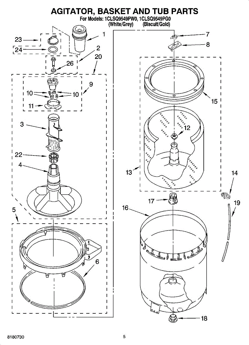 Parts for Whirlpool 1CLSQ9549PG0: 03 - Agitator, Basket And Tub Parts