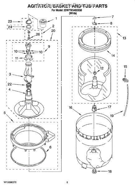 The Complete Agitator Assembly is an OEM part for Whirlpool washing machines. This assembly includes the central vertical agitator component along with the retainer ring. Together they are responsible for the agitation and rubbing motions that work to remove soils and stains from clothing during wash cycles. Causes of a bad agitator assembly can include wear and tear leading to wobbly or loose motions, cracks in plastic components from repeated impacts, or corrosion of metal components. Symptoms of a bad complete agitator assembly include: