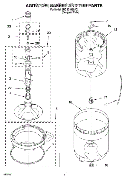 The Complete Agitator Assembly is an OEM part for Whirlpool washing machines. This assembly includes the central vertical agitator component along with the retainer ring. Together they are responsible for the agitation and rubbing motions that work to remove soils and stains from clothing during wash cycles. Causes of a bad agitator assembly can include wear and tear leading to wobbly or loose motions, cracks in plastic components from repeated impacts, or corrosion of metal components. Symptoms of a bad complete agitator assembly include: