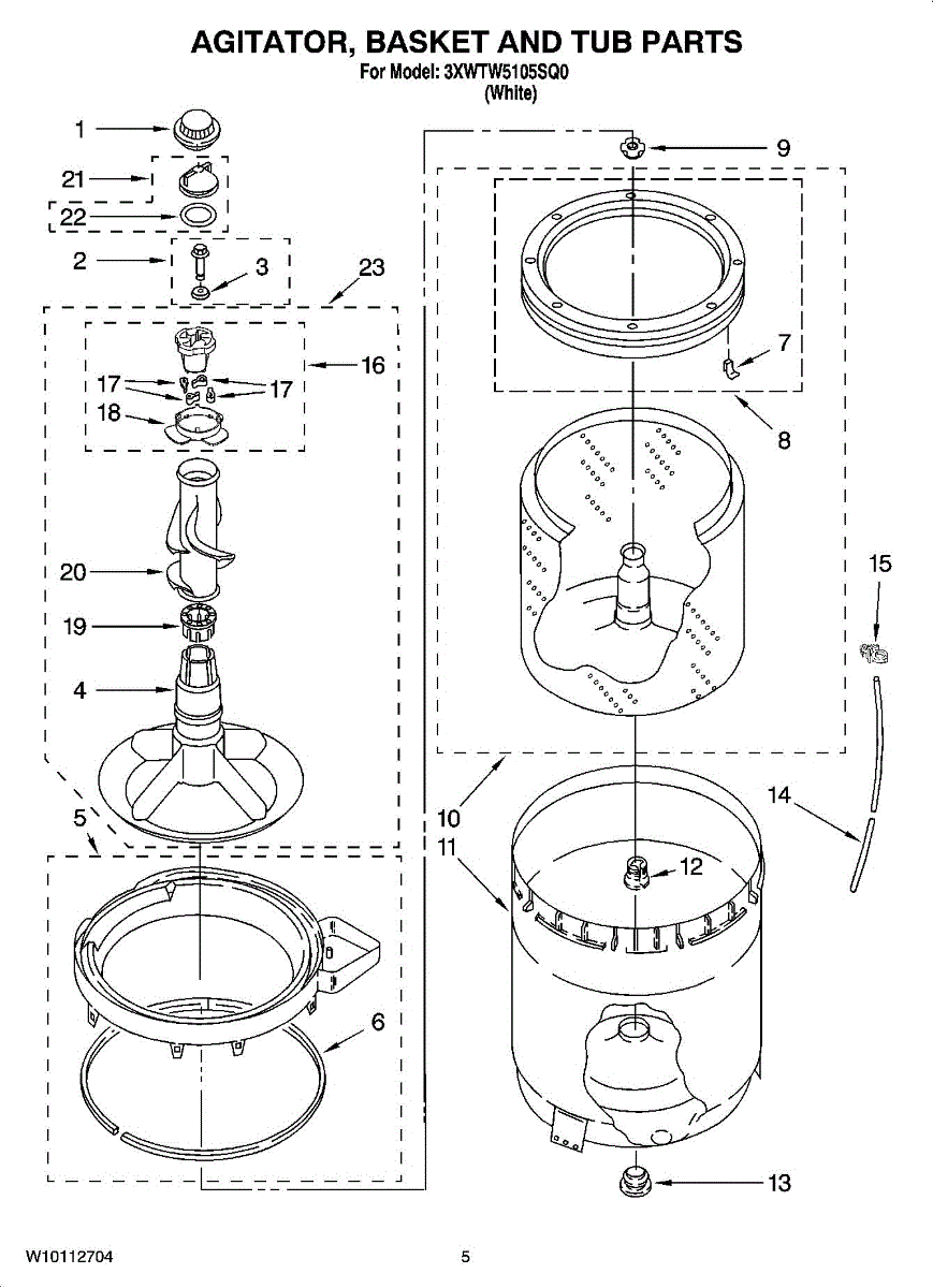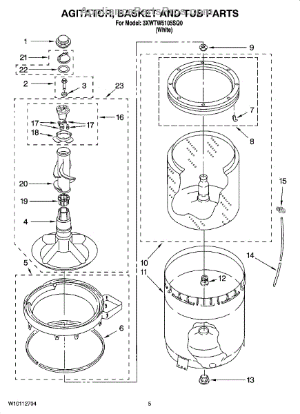 Fixes broken or worn agitator fins causing poor wash performance. Direct replacement for washer agitator base. Moderate DIY repair, 30-45 minutes.