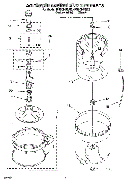 Parts for Whirlpool 4PGSC9455JQ2: 03 - Agitator, Basket And Tub Parts