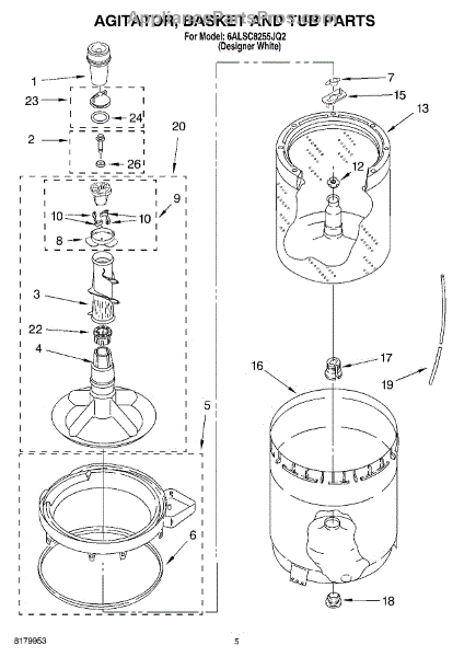 The Complete Agitator Assembly is an OEM part for Whirlpool washing machines. This assembly includes the central vertical agitator component along with the retainer ring. Together they are responsible for the agitation and rubbing motions that work to remove soils and stains from clothing during wash cycles. Causes of a bad agitator assembly can include wear and tear leading to wobbly or loose motions, cracks in plastic components from repeated impacts, or corrosion of metal components. Symptoms of a bad complete agitator assembly include: