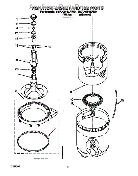 Parts for Whirlpool 6MAX5143AW0: Agitator, Basket And Tub Parts