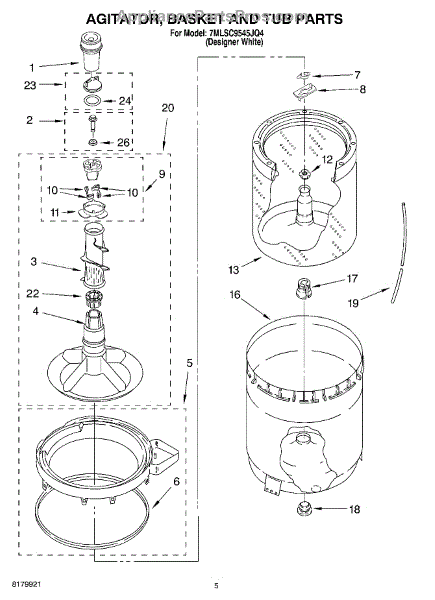 The Complete Agitator Assembly is an OEM part for Whirlpool washing machines. This assembly includes the central vertical agitator component along with the retainer ring. Together they are responsible for the agitation and rubbing motions that work to remove soils and stains from clothing during wash cycles. Causes of a bad agitator assembly can include wear and tear leading to wobbly or loose motions, cracks in plastic components from repeated impacts, or corrosion of metal components. Symptoms of a bad complete agitator assembly include: