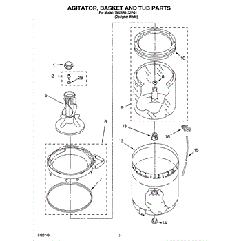 Parts for Whirlpool 7MLSR6132PQ1: 03 - Agitator, Basket And Tub Parts
