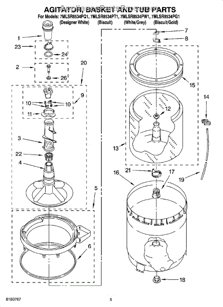 Parts for Whirlpool 7MLSR8534PQ1: 03 - Agitator, Basket And Tub Parts