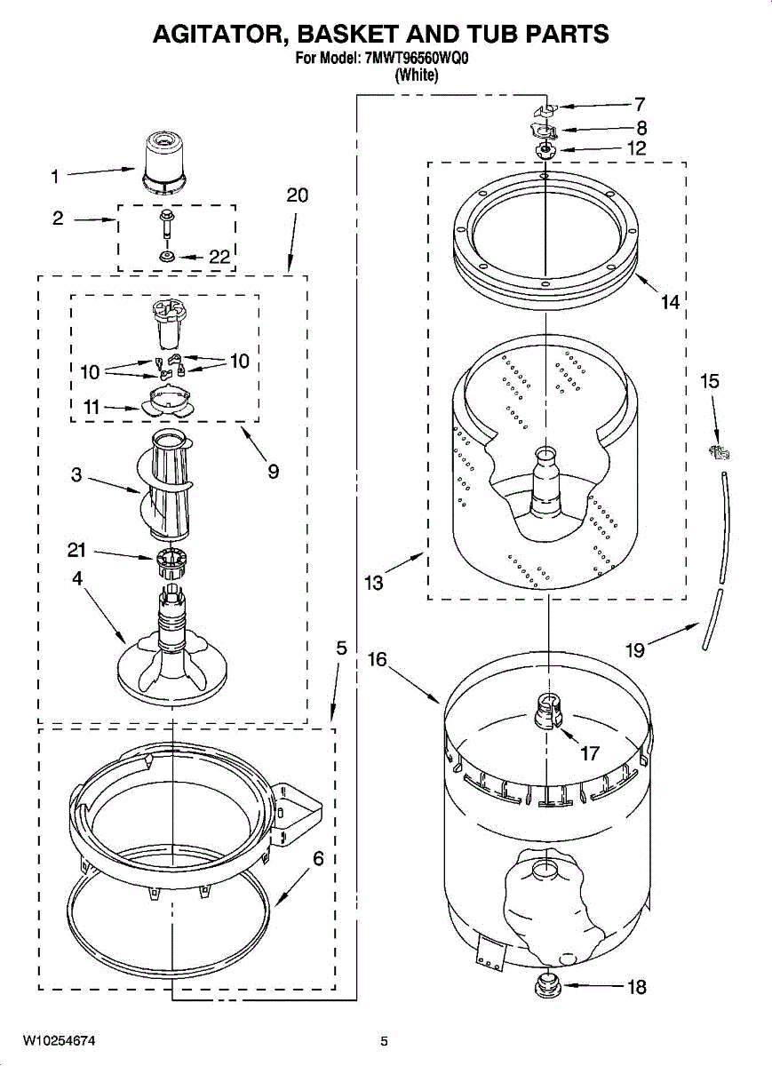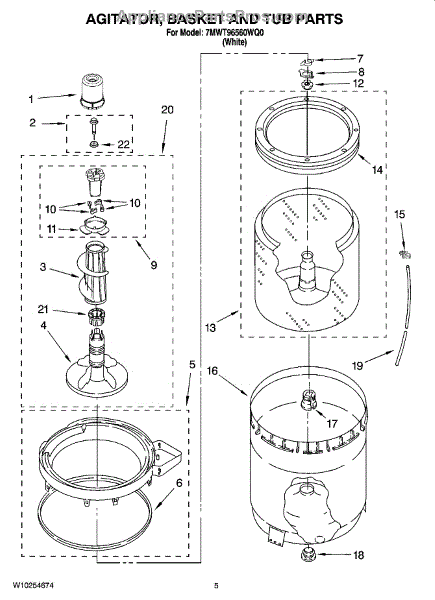 Parts for Whirlpool 7MWT96560WQ0: 03 - Agitator, Basket And Tub Parts