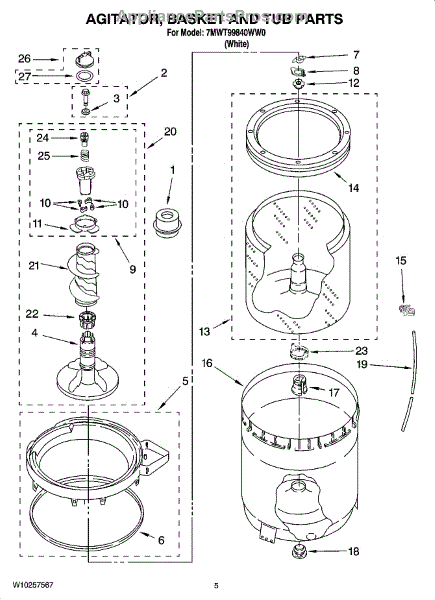 Parts for Whirlpool 7MWT99840WW0: 03 - Agitator, Basket And Tub Parts