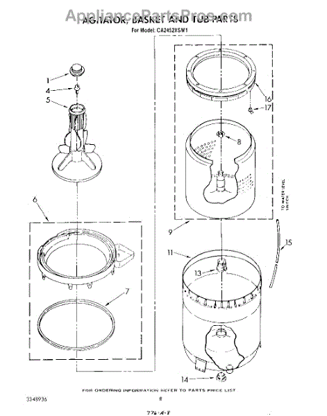 Parts for Whirlpool CA2452XSW1: 06 - Agitator, Basket And Tub Parts
