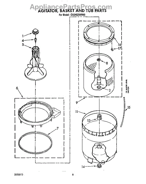 Parts for Whirlpool CA2452XWW0: 06 - Agitator, Basket And Tub Parts