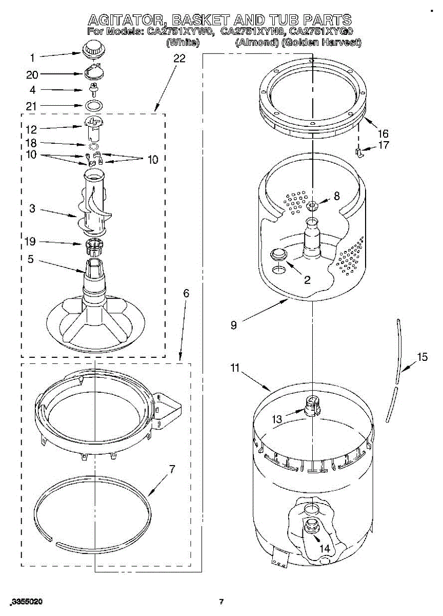 Parts for Whirlpool CA2751XYW0: 05 - Agitator, Basket And Tub Parts