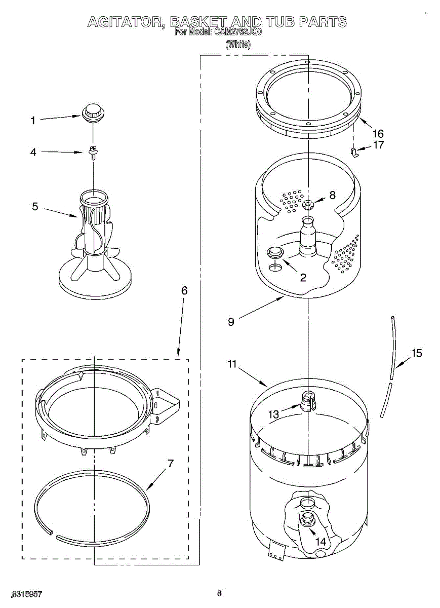 Seals the center post/agitator shaft to prevent water leaks during wash cycles. Replace if you notice pooling water under your washer. Confirm fit with your model.