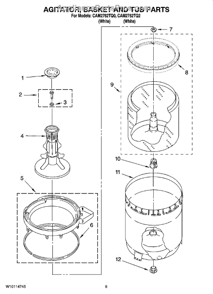 This is a Whirlpool washer inner tub spin basket. The spin basket is the portion of the washing machine the clothes are held. This piece must operate efficiently for the items in the washer to be thoroughly cleaned. The main indicators of a damaged spin basket are the loss of the ability to spin or the washer making loud noises due to moving and rattling of the spin basket.Begin installing the new basket by unthreading the screws that fasten the top portion of the washer to the base. Tilt this back, and use a screwdriver to unfasten the clips that hold the top of the tub in place. Remove the fabric softener reservoir from the center of the basket. Use a socket to unbolt the agitator at the bottom of the tub. Once this is removed, reach down and lift out the old tub. Complete these instructions in reverse to install the new unit.This is a genuine OEM part sourced directly from the manufacturer. This product is compatible with Whirlpool, Amana, Roper, Kenmore, and Maytag appliances.