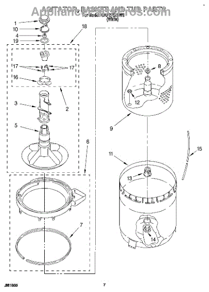 The Complete Agitator Assembly is an OEM part for Whirlpool washing machines. This assembly includes the central vertical agitator component along with the retainer ring. Together they are responsible for the agitation and rubbing motions that work to remove soils and stains from clothing during wash cycles. Causes of a bad agitator assembly can include wear and tear leading to wobbly or loose motions, cracks in plastic components from repeated impacts, or corrosion of metal components. Symptoms of a bad complete agitator assembly include: