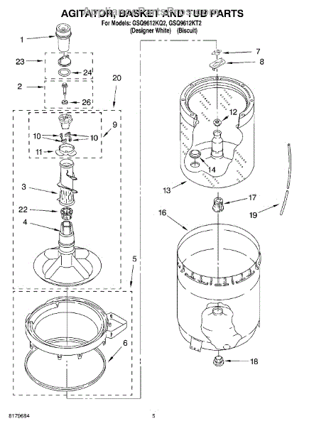 Parts for Whirlpool GSQ9612KT2: 03 - Agitator, Basket And Tub Parts